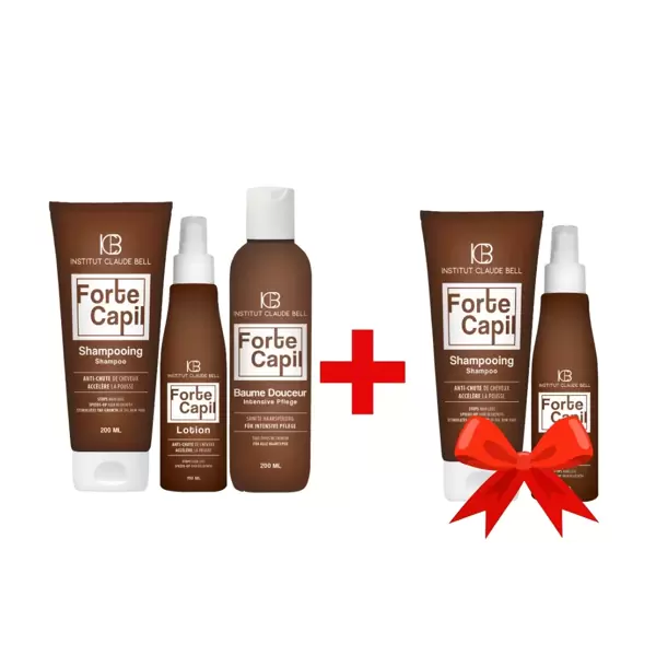 FORTE CAPIL shampoo (2 x 200 ml) + hajszesz (2 x 150 ml): Az aktív összetevők (baicapil, capilectine, B6-vitamin, B5-provitamin) csökkentik a hajhullást és elősegítik az új növekedést.