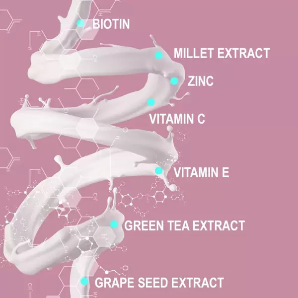 A növényi kivonatok, ásványi anyagok és vitaminok kölcsönhatása javítja a fejbőr állapotát, aktiválja az új hajszálak növekedését és csökkenti a hajhullást.